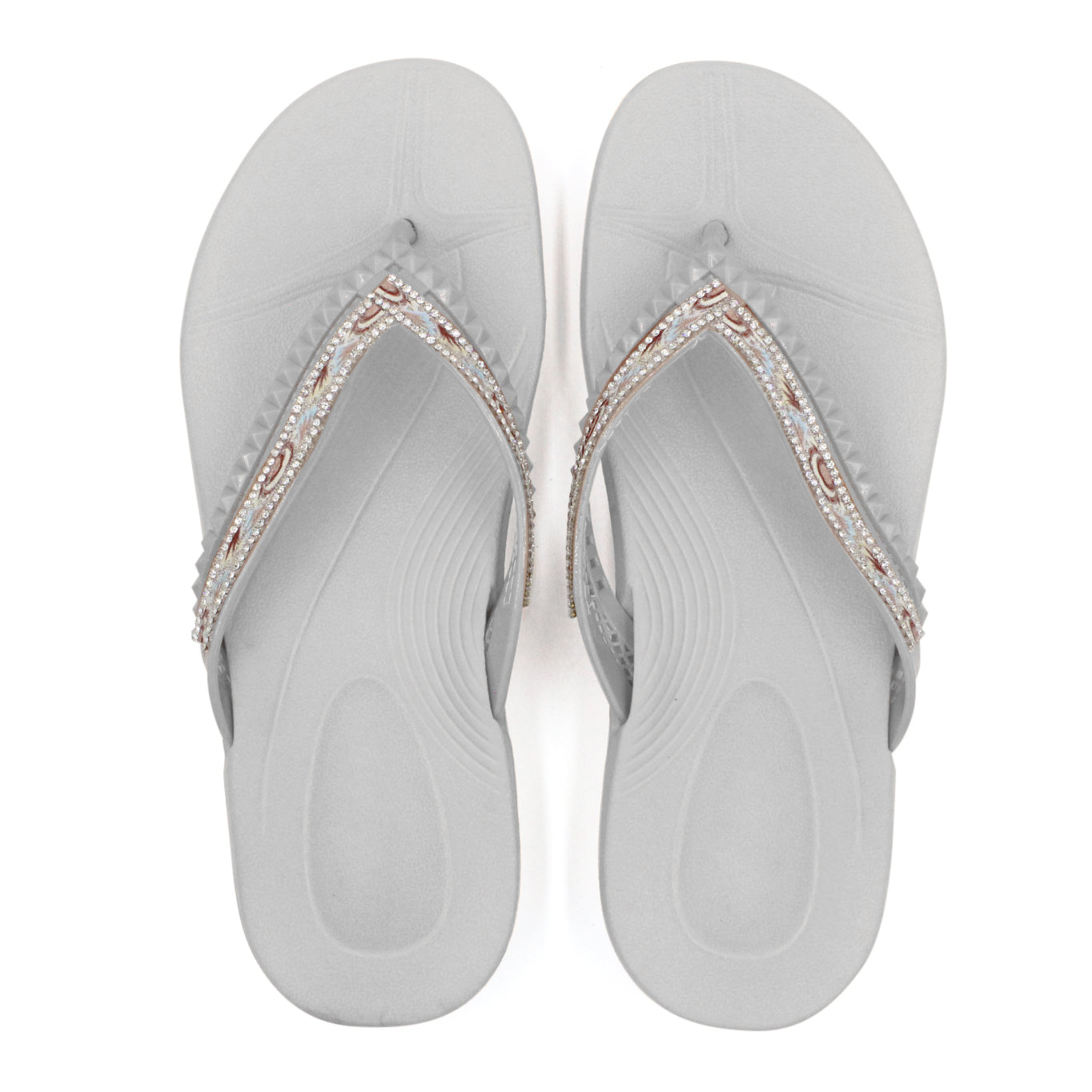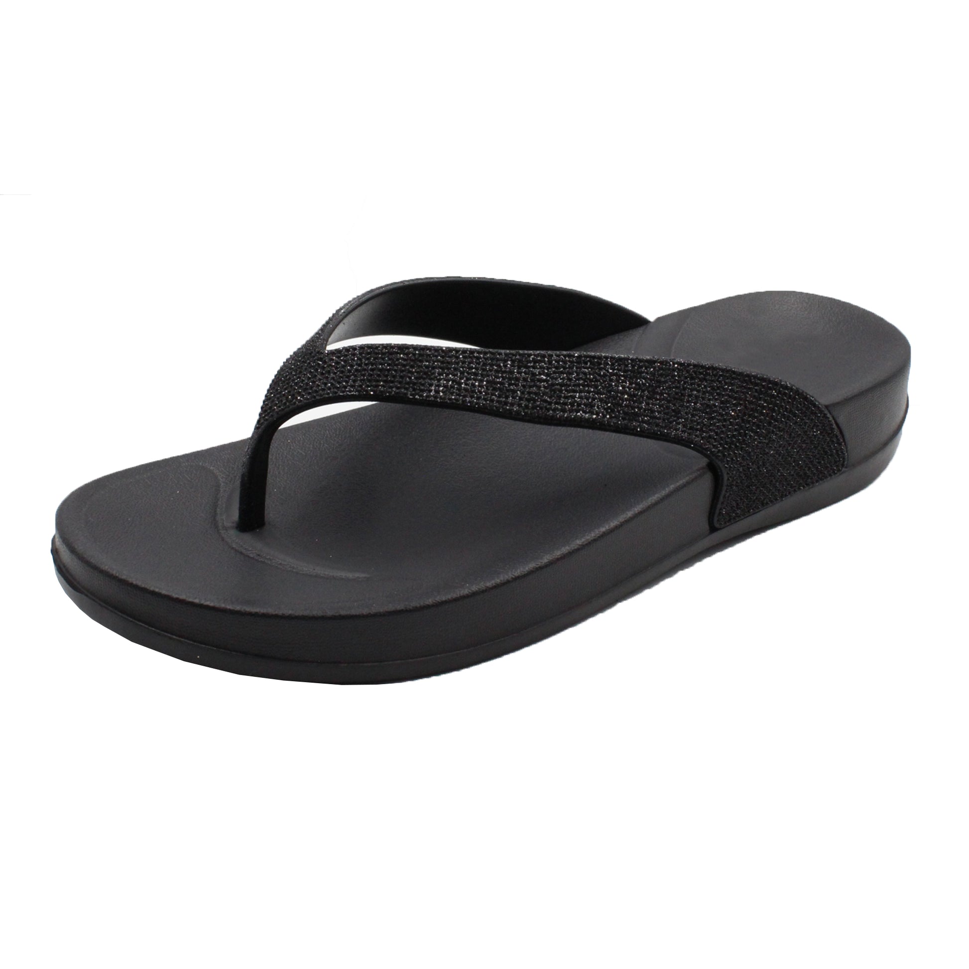 Experience a comfortable boost with LAVRA Women's Rhinestone Flip Flops! These platform sandals for women are made from a soft, cushioned material and feature an embellished rhinestone t-strap that will make any outfit sparkle! The sculpted footbed is supportive for comfortable wear, while the flexible sole allows you to walk through your day freely and with ease! Pair with all your favorites from flowy dresses to skirts and denim pants!