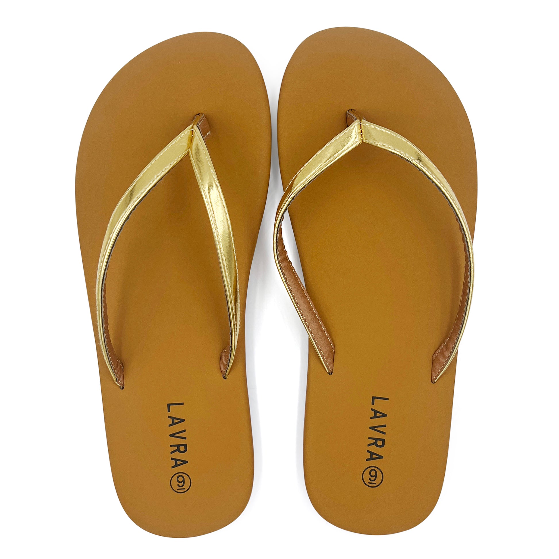 Complete your warm-weather wardrobe with LAVRA Casual Beach Flip Flops! These simple flat flip flops feature a minimalistic, skinny thong strap and brown footbed guaranteed to compliment your everyday spring and summer outfits! The vegan leather footbed is soft and cushioned, providing maximum comfort that lets you go about your day with ease. Its simple, yet elevated design enables you to dress these sandals up or down, day to evening! Pair them with all your favorites, from sundresses to skirts and swimwear! Available in a variety of colors like Gold, White, and Silver!