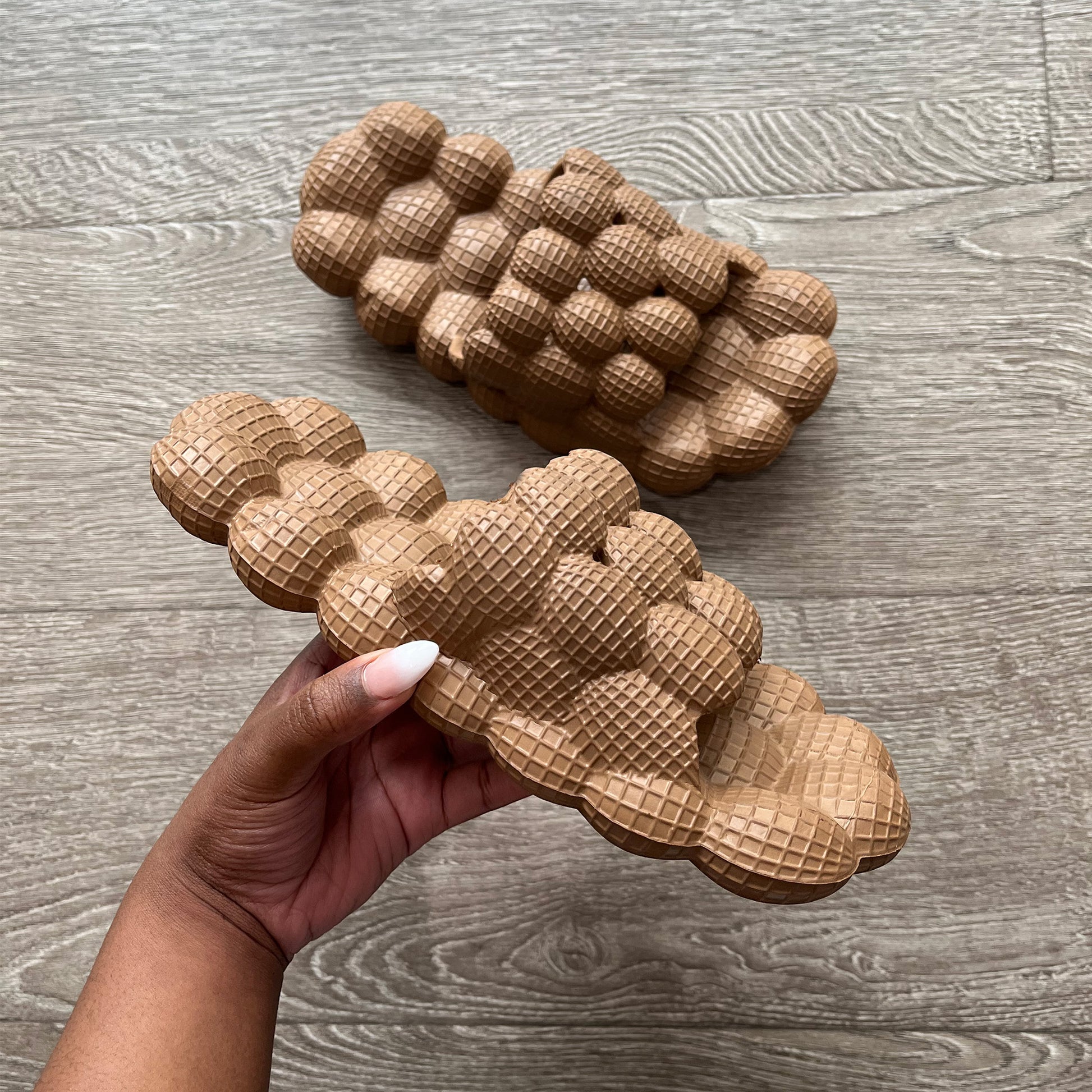 Seamlessly blend comfort and fashion with LAVRA Women's Open Toe Bubble Slides! These pillow slide sandals are made from a soft rubber material to keep your feet feeling cool and comfortable as you travel through the day! They feature an ultra-cushioned footbed that's gentle on the feet and circulates blood flow. Pair them with a wide range of outfits from sundresses to shorts and a comfy t-shirt for a stylish warm-weather vibe!