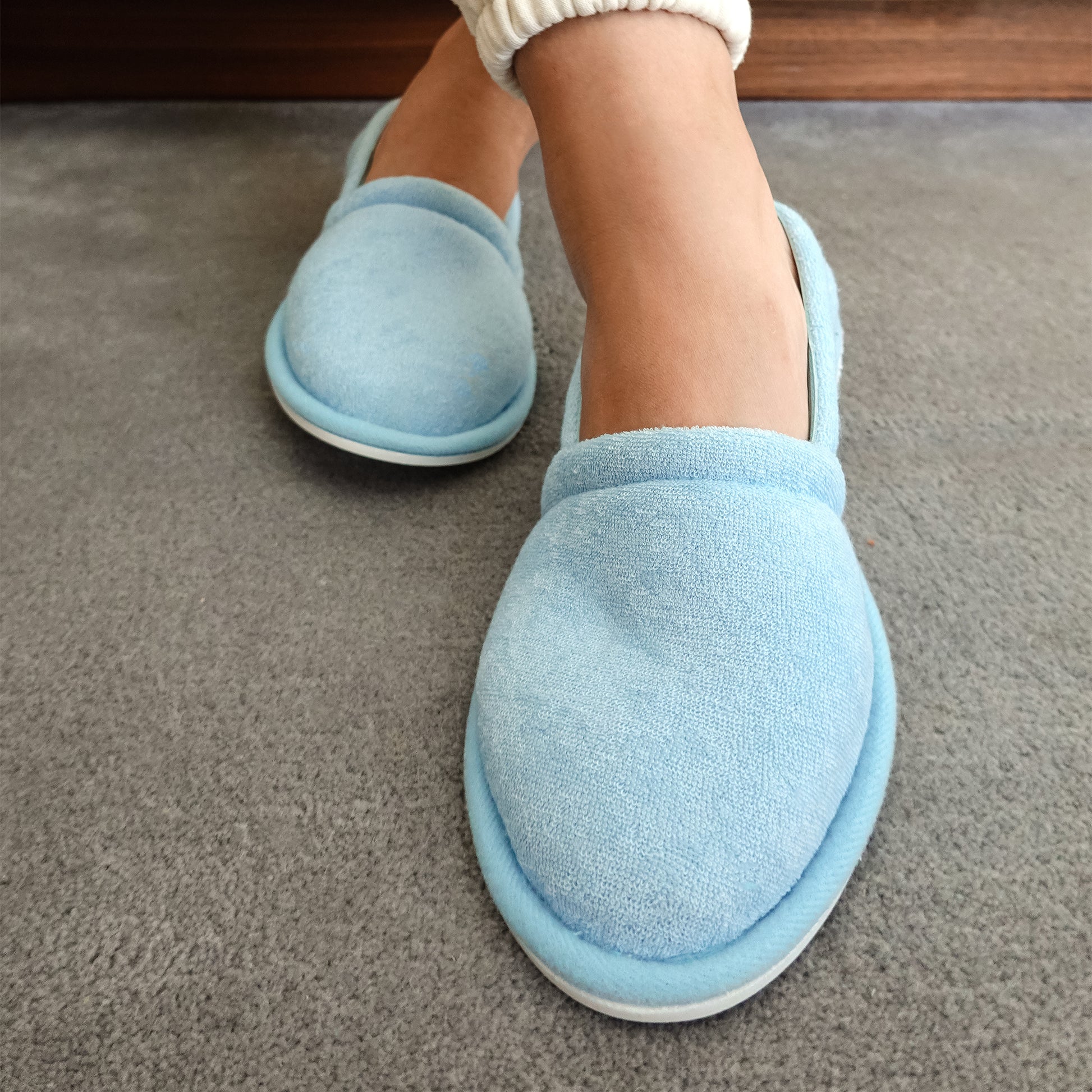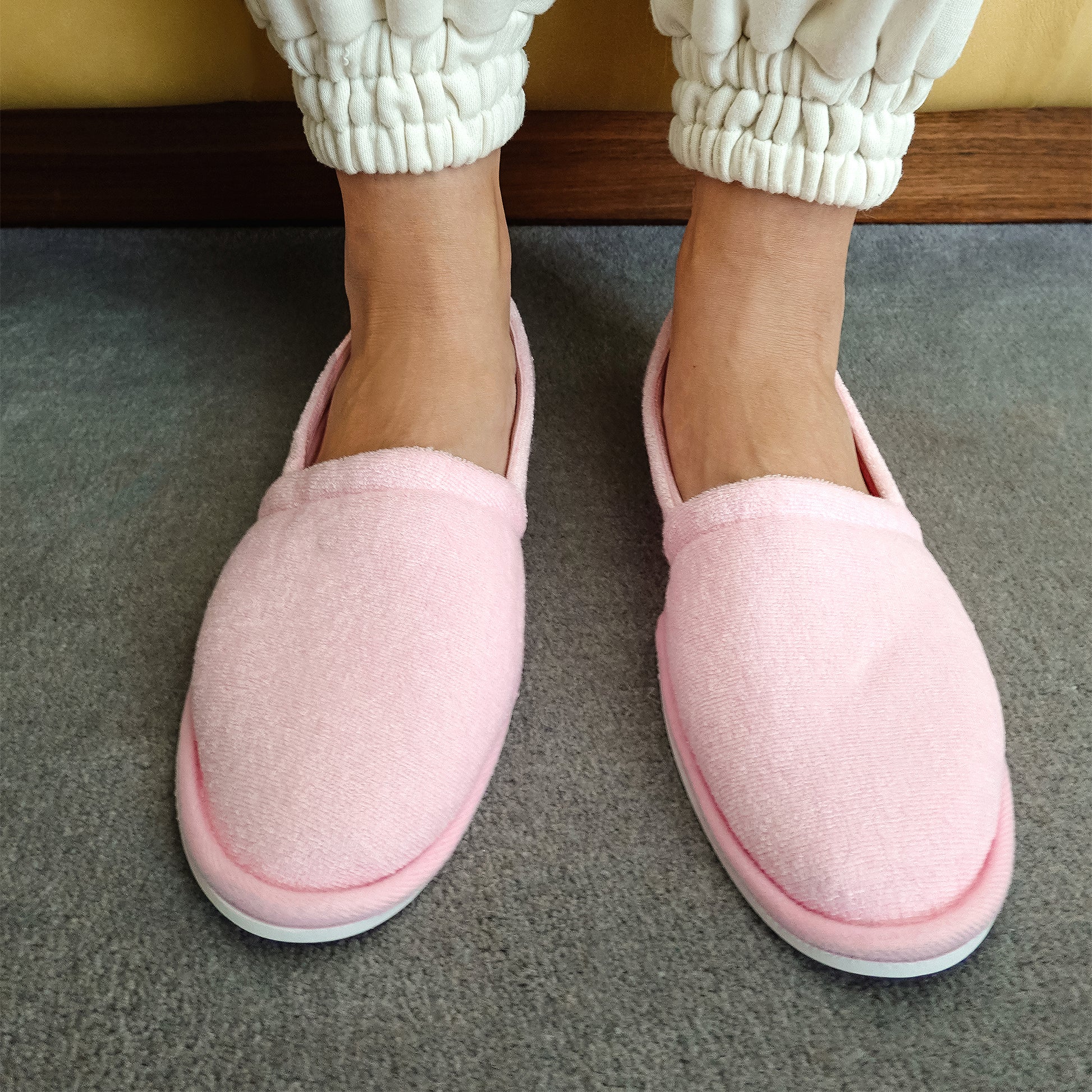 Make relaxation even better with LAVRA Women's Moccasin Slippers. These slippers are made from a soft, plush terrycloth material with a cushioned footbed to provide you with all-day coziness! Its slip on style allows you to easily slide them on and off, perfect for keeping by the bed! Slip them on after a long day of work or for a relaxing day inside for ultimate comfort. Available in a variety of colors such as White, Blue, Pink, and Black!